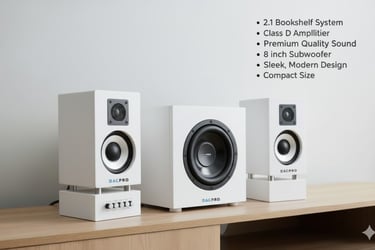 Bookshelf speakers are compact loudspeakers designed to sit on shelves, stands, or desks, delivering high-quality stereo sound in smaller spaces.
